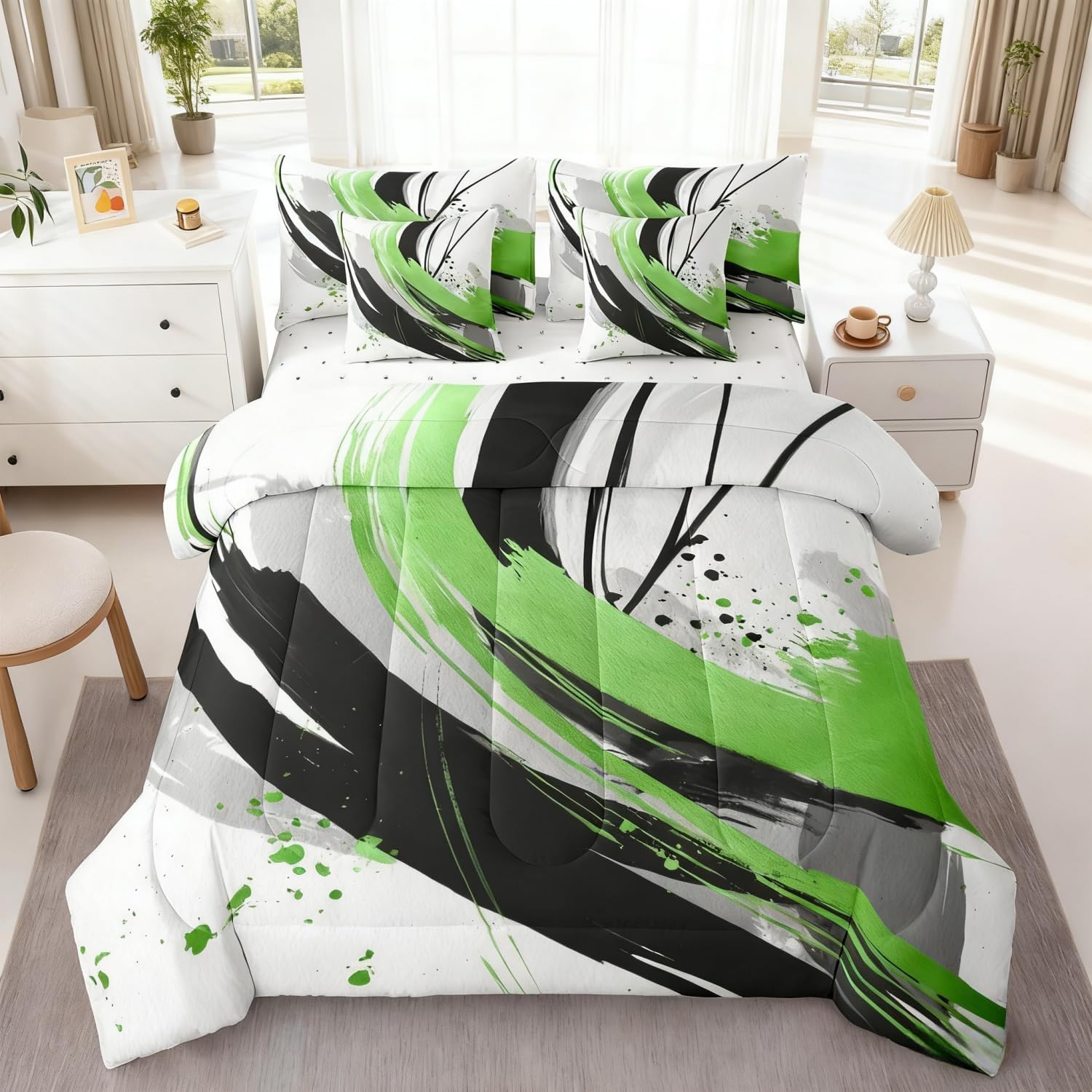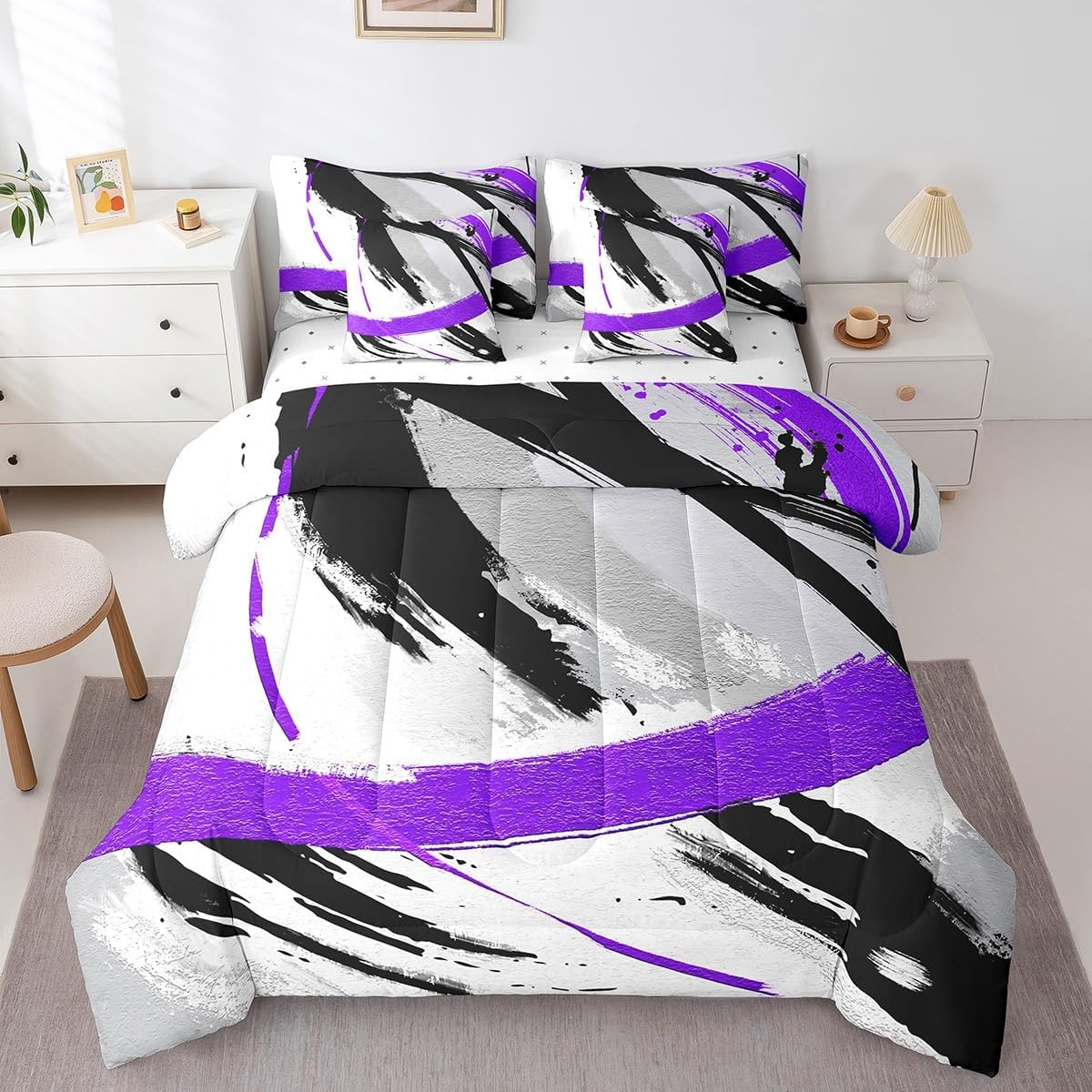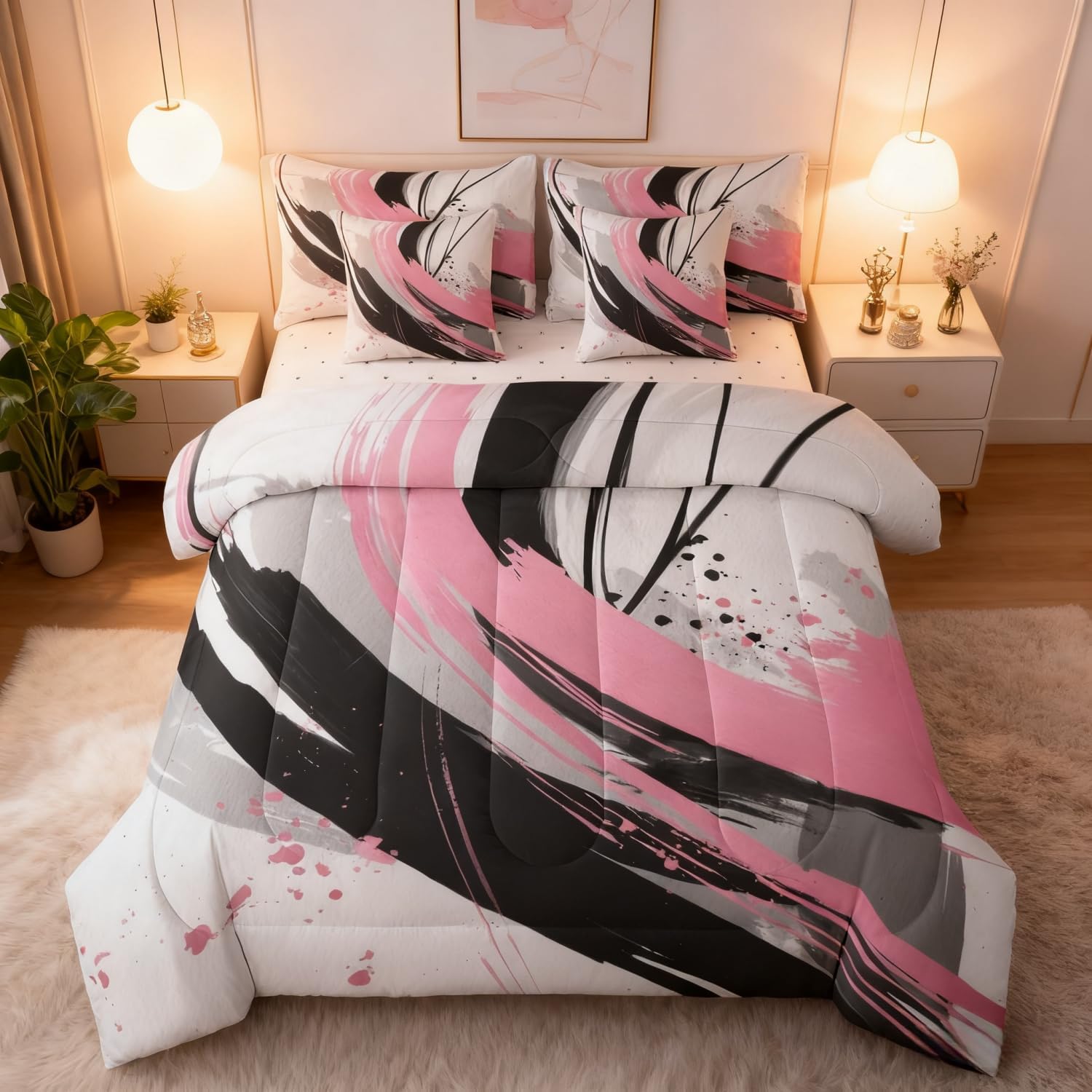 | Included Components | 1 Fitted Sheet 78"x80"x16", 1 Flat Sheet 106"x90", 2 Throw Pillow Covers 18"x18", Comforter, Pillow Cover |