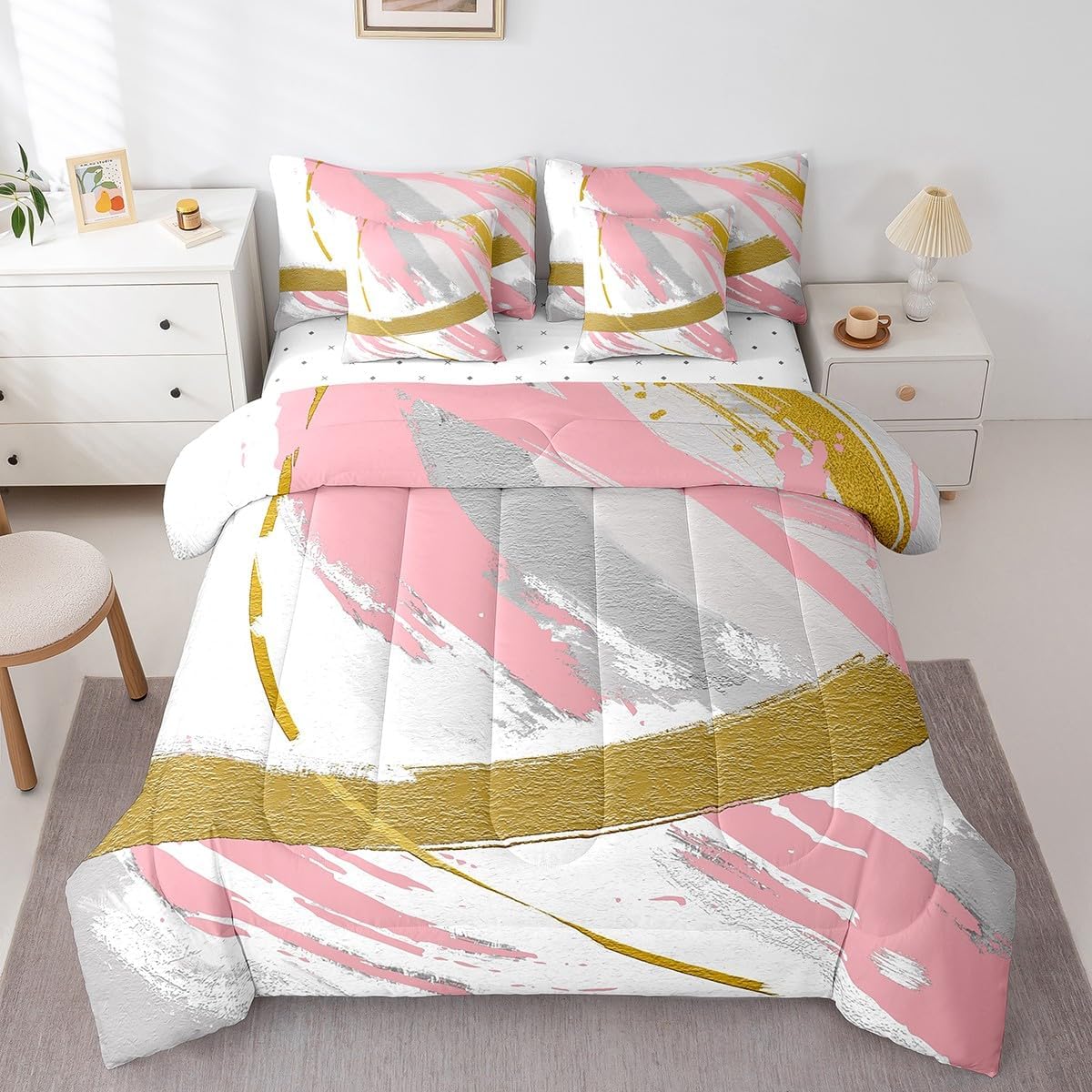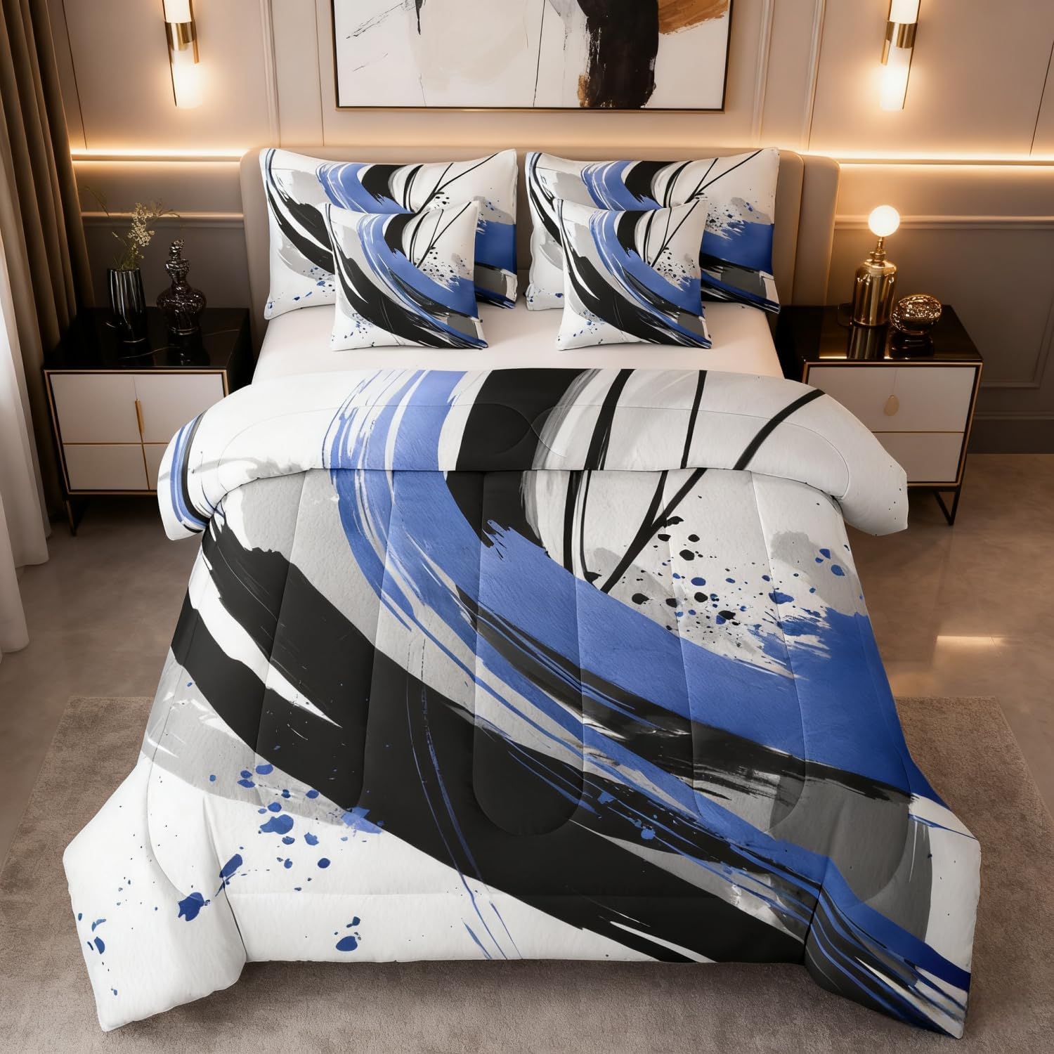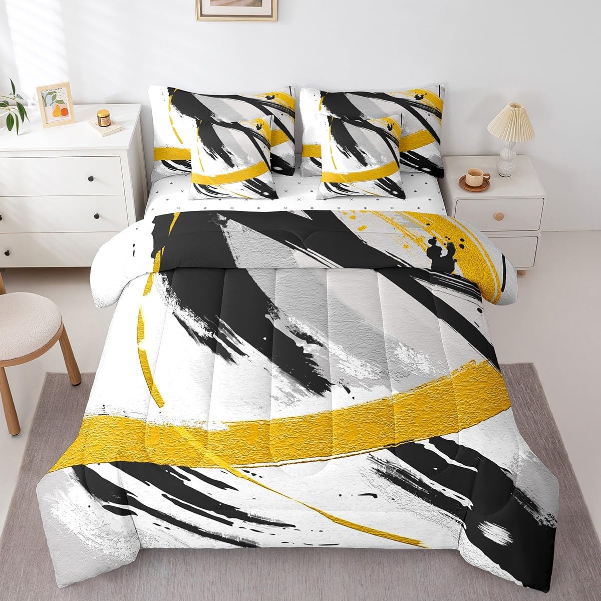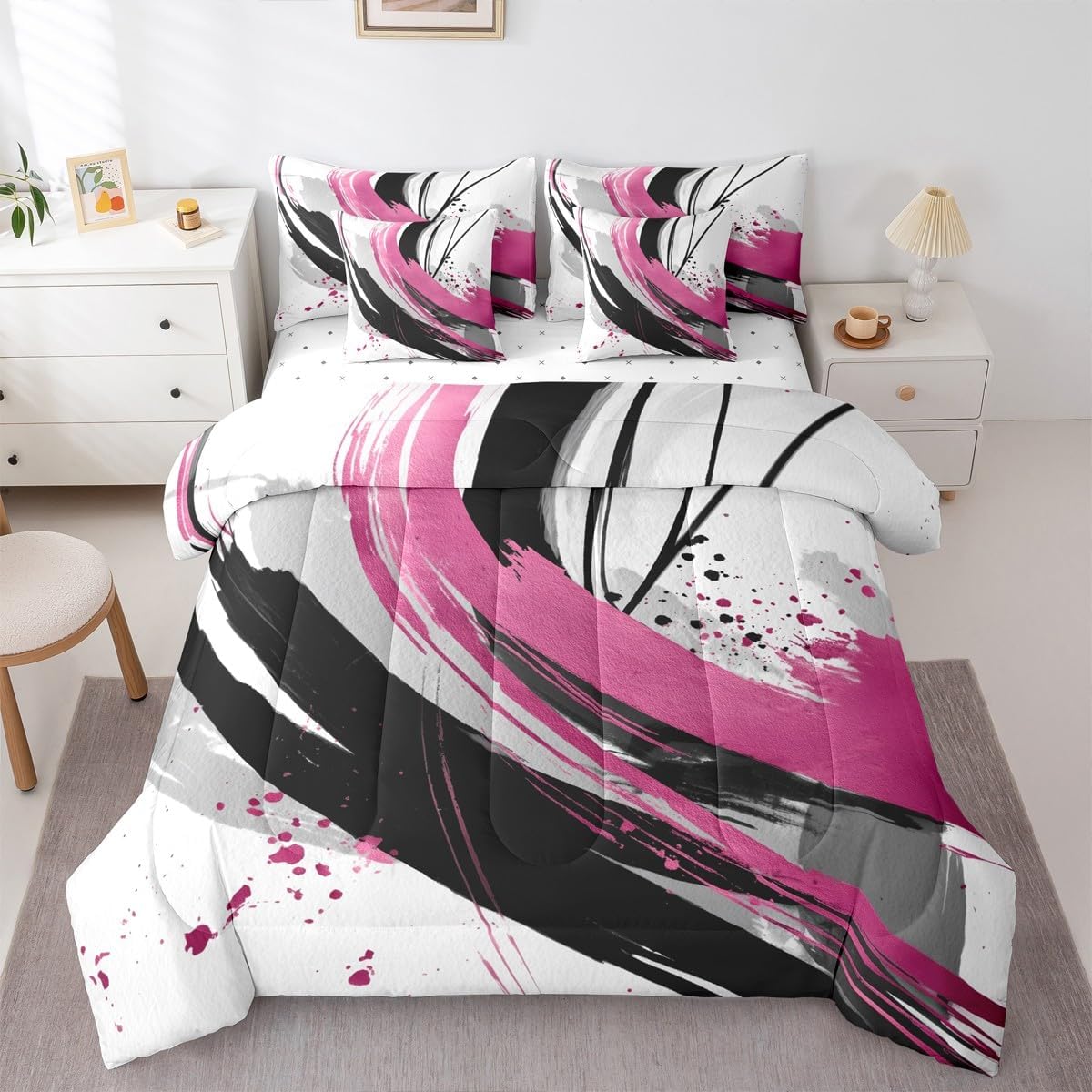 | Included Components | 1 Fitted Sheet 78"x80"x16", 1 Flat Sheet 106"x90", 2 Throw Pillow Covers 18"x18", Comforter, Pillow Cover |