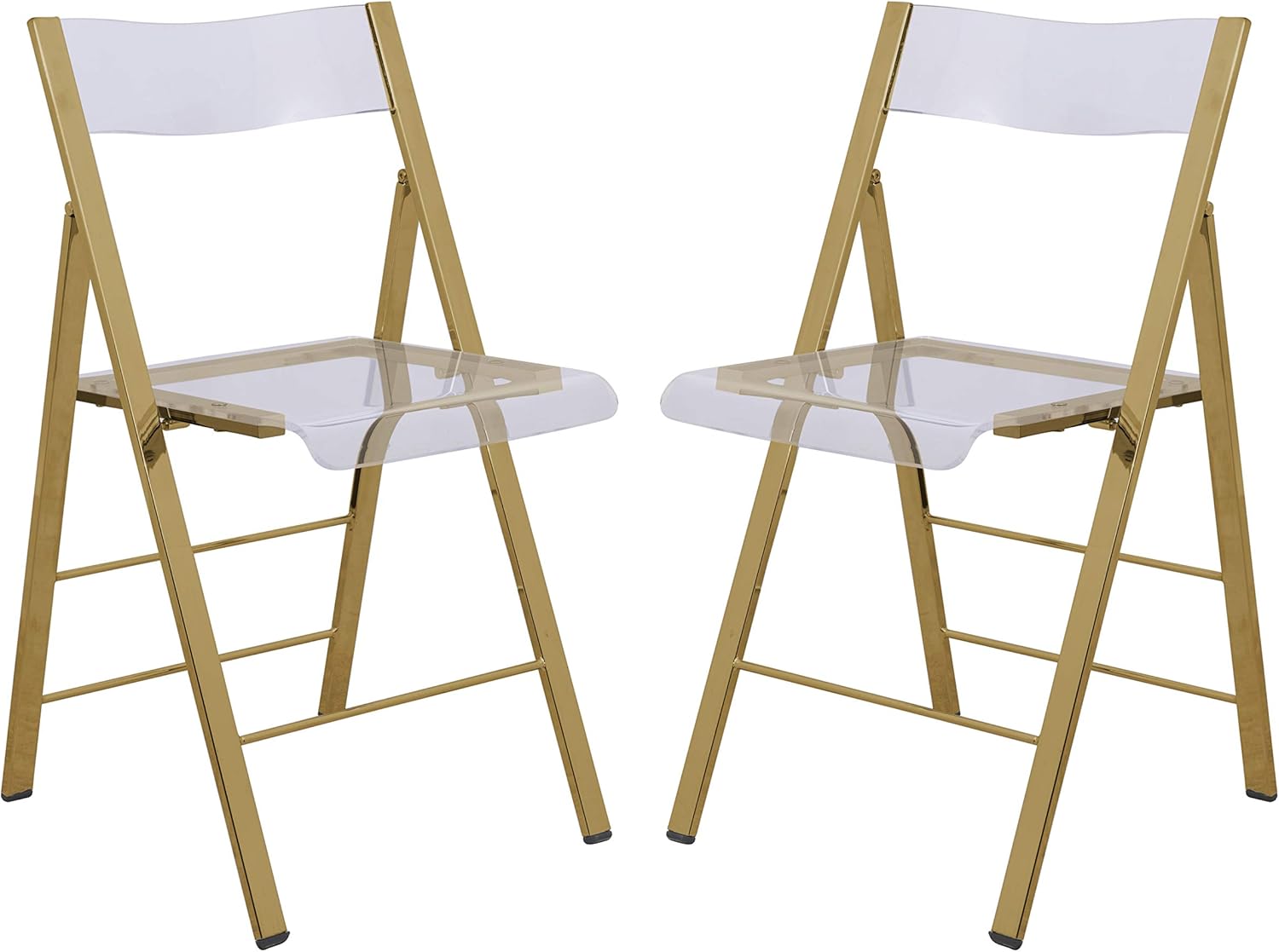 Never have enough seats when hosting a party? The Menno Folding Chair is the perfect solution for all those needed extra seats. Its waterfall edged seat and curved backrest are formed of high quality acrylic and its foldable Gold base is constructed of sturdy chromed iron. Its lightweight compact structure allows for easy storage and retrieval for all those times you need an extra seat.
