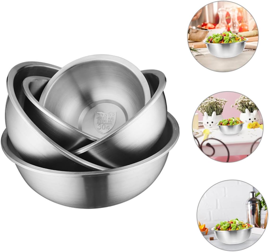 Package List 1 x stainless mixing bowl 20cm 1 x stainless mixing bowl 22cm 1 x stainless mixing bowl 24cm 1 x stainless mixing bowl 26cm 1 x stainless mixing bowl 28cm Characteristics -Size:24.00X24.00X8.00cm/9.43X9.43X3.14in serving bowl -Size:26.00X26.00X8.50cm/10.22X10.22X3.34in serving bowls -Color:Silver stainless bowl -Size:22.00X22.00X7.50cm/8.65X8.65X2.95in mixing bowl kitchen -Material:Stainless salad bowls large serving -Size:20.00X20.00X7.00cm/7.86X7.86X2.75in large mixing bowls -Size:28.00X28.00X9.00cm/11.00X11.00X3.54in large bowl - This mixing bowl can be used to egg or cream, salad, chicken or meat, mix ingredients large bowls. -Great for indoor and outdoor use with easy transportation, storage, and cleaning, a good kitchen helper mixing bowl. -Perfect for all your kitchen foods and looks great at the same time, large enough to hold food stainless bowl kitchen. - A multi-functional stainless mixing bowl that meets your needs egg mixing bowl. -Our mixing bowl is perfect for mixing salad, noodle, soup, mixing egg, rice, etc large stainless mixing bowl.Goods Descriptionegg mixing bowl Excellent material and fine craftsmanship, stainless bowl is sturdy and long time.large mixing bowls The mixing basin is made of stainless , which has and functions. kitchen bowl Stainless soup basin has a wide range of uses.stainless mixing bowls Take at this! Our stainless mixing basin is a for your kitchen